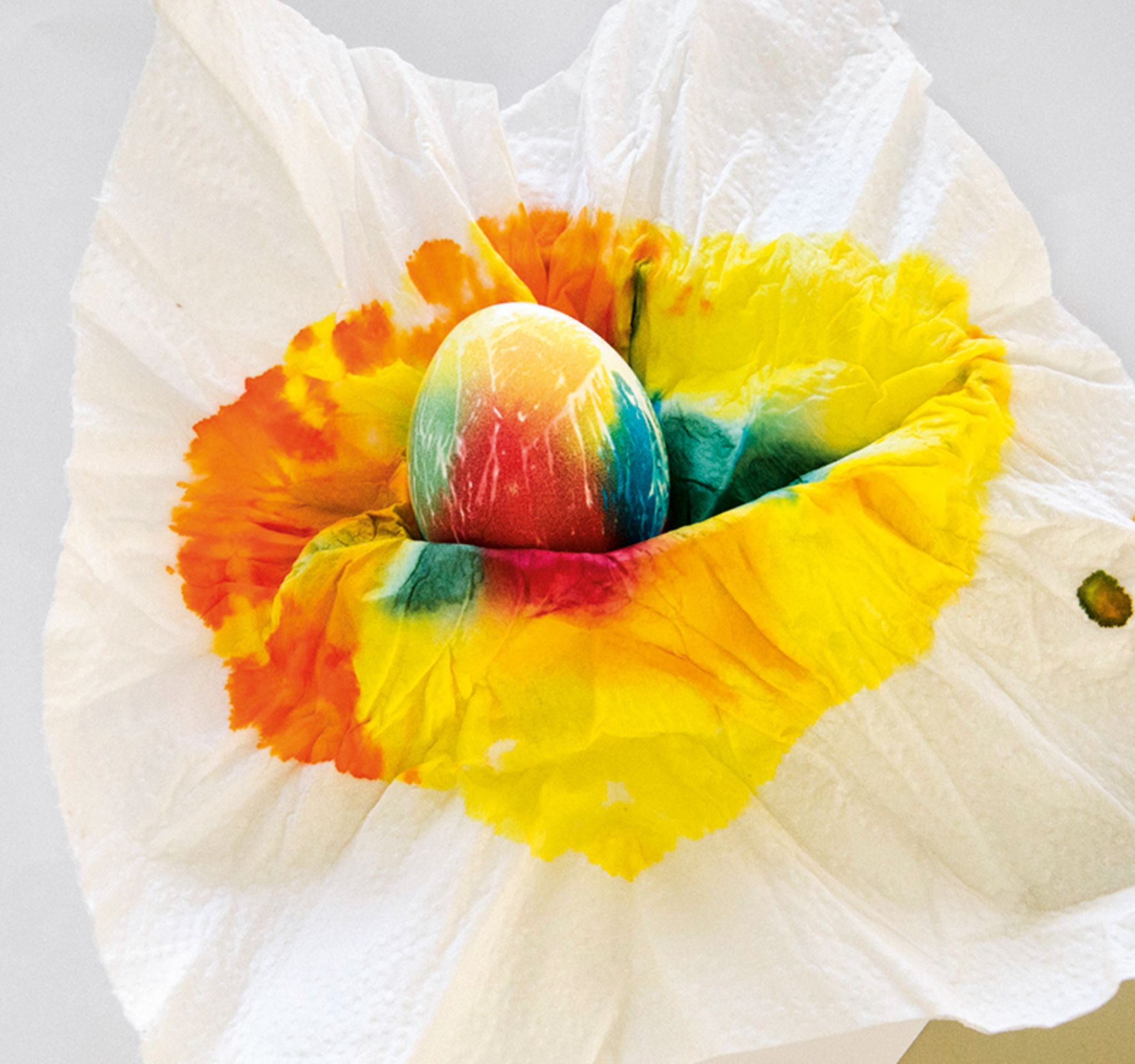 5: Wenn deine Kunstwerke getrocknet sind, kannst du die bunten Tücher von den Ostereiern entfernen. Viel Spaß beim Verstecken!