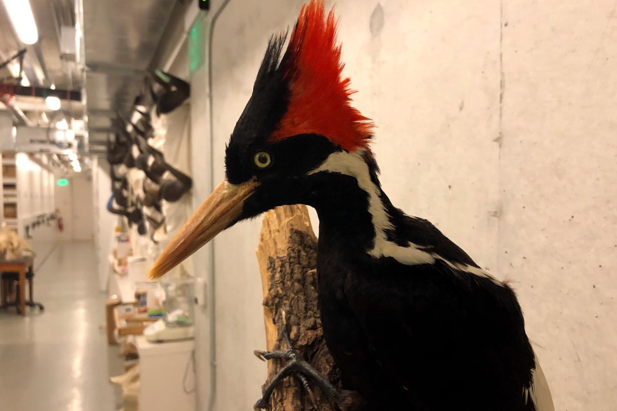 Elfenbeinspechte waren in den USA bis ins 19. Jahrhundert hinein weit verbreitet. Doch je mehr Menschen in seinen ursprünglichen Lebensraum eindrangen, desto seltener wurde der Vogel. Zudem stand er in einer Zeit weit verbreiteter Armut auch auf dem Speisezettel vieler Amerikaner*innen. Um das Maß voll zu machen, wurde der Vogel bei Jägern beliebter, je seltener er wurde. Dutzende Exemplare haben die Zeiten bis heute in den Magazinen und Vitrinen von Museen und Sammlungen überdauert – ausgestopft. In den 1930er-Jahren konnten Forscher*innen in Florida, South Carolina und Louisiana nur noch 22 Tiere zählen.