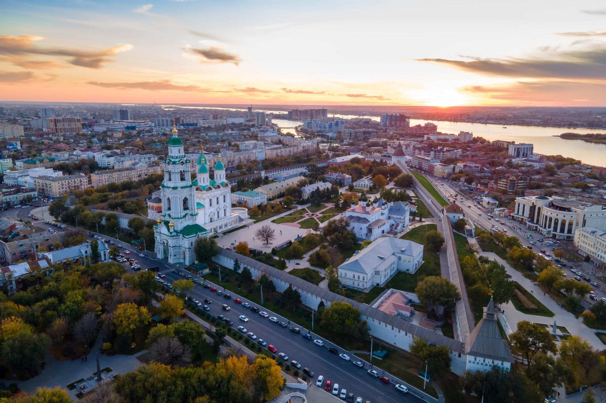 Hier im Zentrum treffen die Geschichte der Zarenzeit und das architektonische Erbe der Sowjetunion aufeinander. Am imposanten Kreml, der seinen Ursprung im 16. Jahrhundert hat, steht vor den Mauern der Festungsanlage ein Denkmal Lenins. Der russische Revolutionsführer gründete einst den ersten kommunistischen Staat. Lenins Vater Ilja Uljanow kam 1831 in Astrachan zur Welt.