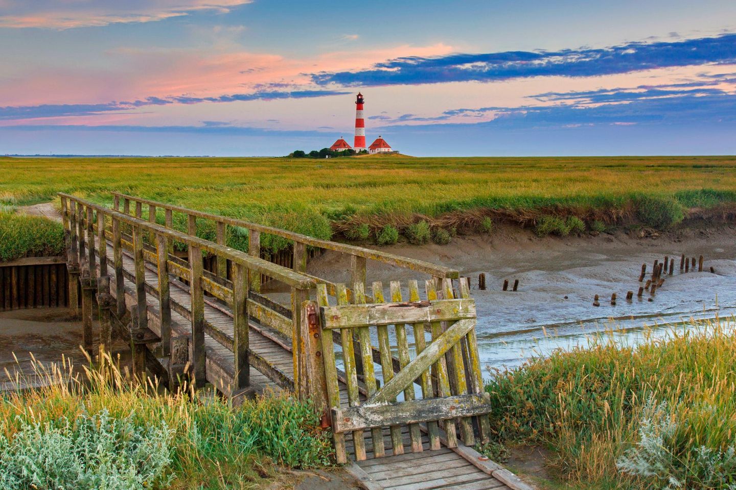 Alle lieben die Dünen und stürmen, wenn am Meer, schnell durch die umliegenden Salzwiesen bis zur Wasserkante. Dabei sind die Salzwiesen ein wahrer Ort für Entdecker – eine lebhafte Zwischenwelt. Mehrmals im Jahr werden sie geflutet und bieten so einer ganz anderen Flora ein Zuhause, wie die gängigen Wiesen im Hinterland. Strandwermut, Schuppenmiere, Grasnelke oder Stranddistel gedeihen hier und blühen in frischen Farben. Wer mehr über dieses Biotop, das weder so richtig zum Meer noch zum Land gehört, erfahren möchte, schließt sich ab dem Leuchtturm Westerheversand einer geführten Salzwiesenwanderung an. Ein ähnliches Angebot gibt es ab dem Meldorfer Hafen zur Hallig Helmsand.
