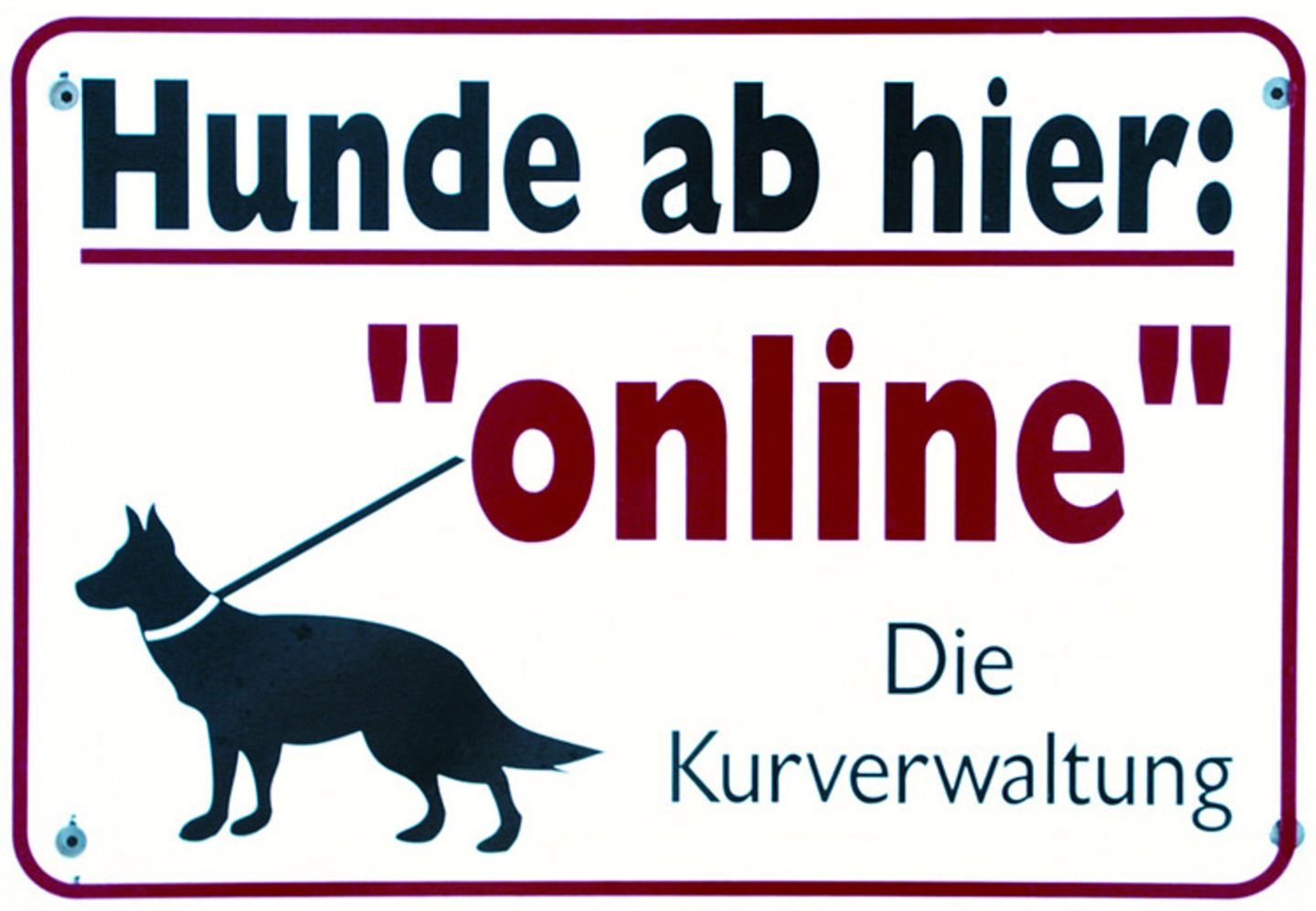 Wer heutzutage nicht online ist, gilt als weltfremd - er ist abgehängt vom aktuellen Geschehen. Umgekehrt bedeutet das: Wer online ist, hängt an der Leine, vielleicht ist er sogar abhängig. Die witzige Kurverwaltung hat "online" also gar nicht falsch übersetzt