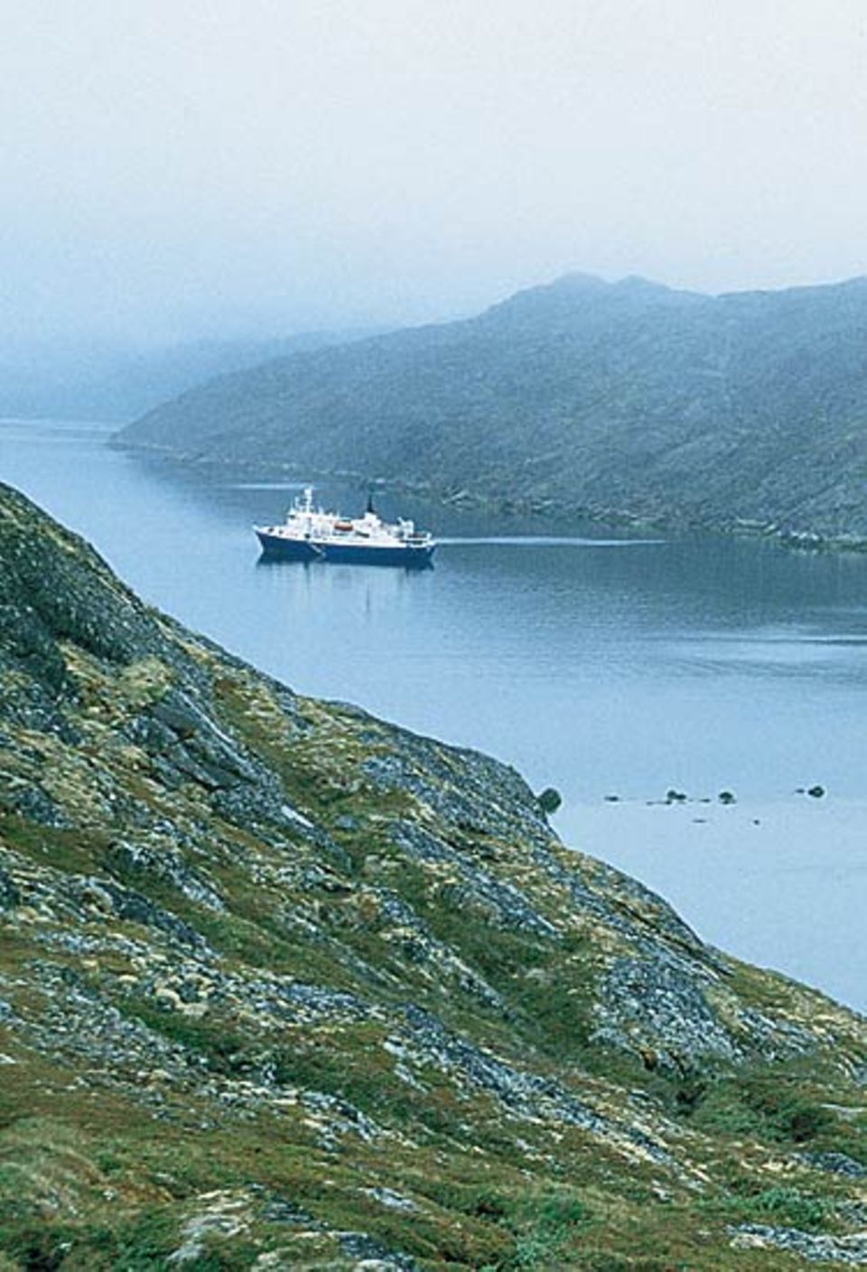 Acht Tage werden wir auf diesem Schiff verbringen, wobei uns pro Tag einige Stunden Auslauf an Land zustehen. Das Leben auf der »Brand Polaris« muss man sich wie eine Mischung aus Universität, Grand Hotel und Weltraumkapsel vorstellen. Universität, weil wir dank einer Meeresbiologin, eines Anthropologen und eines grönländischen Hoteliers aus Thüringen alles über Grönland erfahren. Grand Hotel, weil wir hervorragend und freundlich umsorgt werden. Weltraumkapsel, weil die Außenwelt wie ein fremder Planet erscheint, den wir nach langer Reise durch Zeit und Raum erreicht haben.